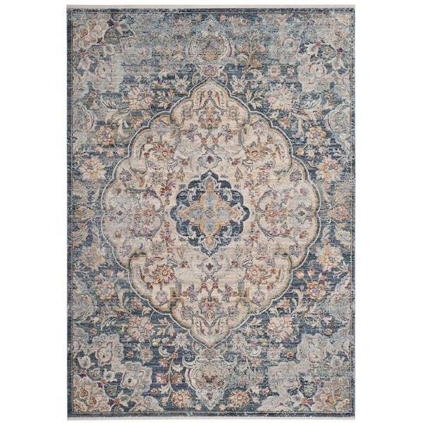 Illusion Power Loomed Medium Rectangle Area Rug, Cream and Blue - 5 x 8 ft.