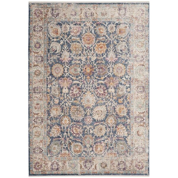 Illusion Power Loomed Medium Rectangle Area RugBlue & Creme 5 x 8 ft.