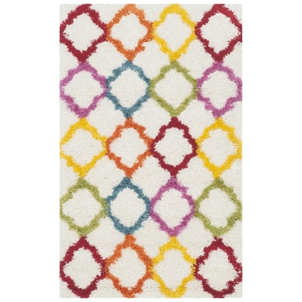 Kids Shag Power Loomed Rectangle Rug- Ivory - Multi- 3 x 5 ft. (Discontinued)