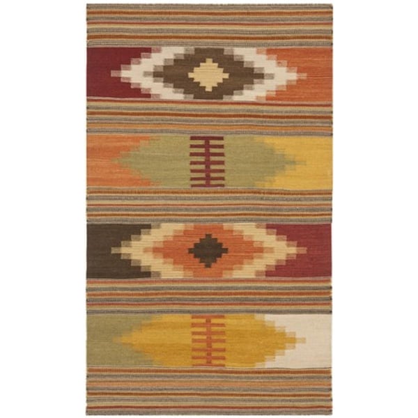 Kilim Hand woven flat weave Accent Rug- Red - Multi- 2 x 3 ft. (Discontinued)