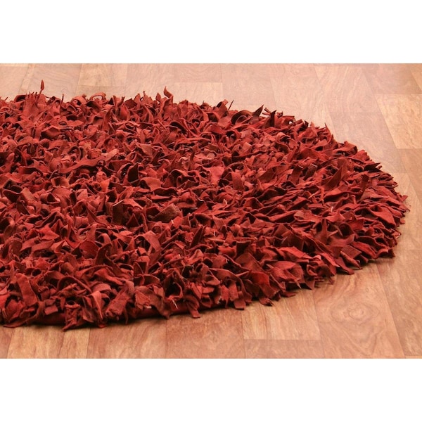 Leather Shag Round Area RugRed 5 x 5 ft.