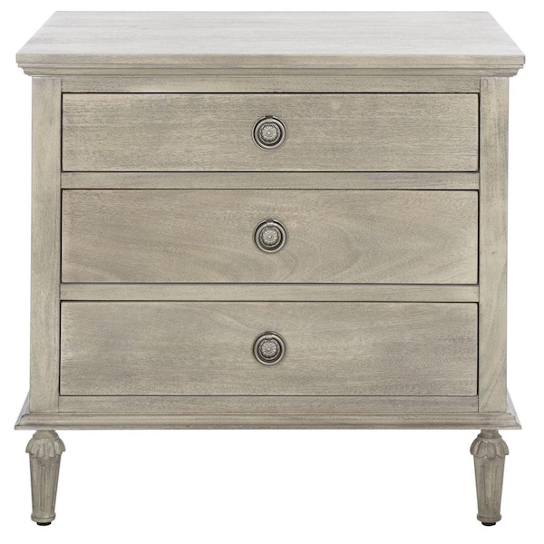 Lisabet 3 Drawer Wood Nightstand, Light Grey (Discontinued)