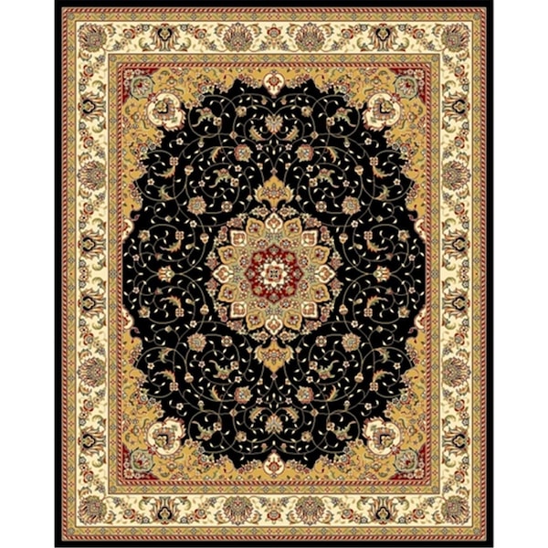 Lyndhurst 7.75 ft. x 10.75 ft. Machine Made Large Rectangle Rug - Black-Ivory