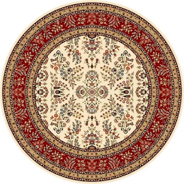 Lyndhurst 8 ft. x 8 ft. Machine Made Round Rug - Ivory-Red (Discontinued)