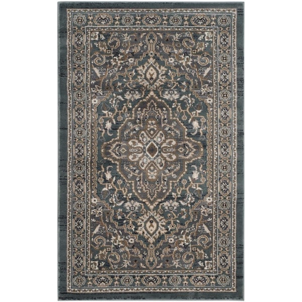 Lyndhurst Small Rectangle Area Rug, Teal and Grey - 4 x 6 ft. (Discontinued)