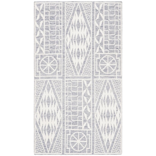 Marbella Bohemian Rectangle Hand Loomed RugsBlue & Ivory 4 x 6 ft. (Discontinued)