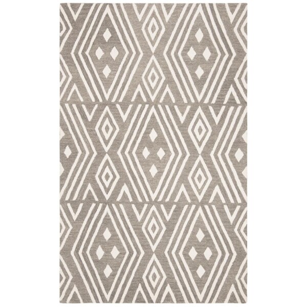 Micro-Loop Bohemian Rectangle Hand Hooked Rugs, Grey & Ivory - 2 ft.-6 in. x 4 ft.