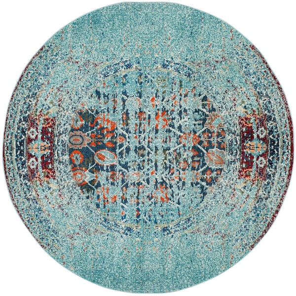 Monaco Power Loomed Round Area RugBlue & Multicolor 9 x 9 ft. (Discontinued)