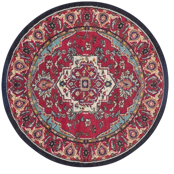 Monaco Power Loomed Round Area RugRed & Turquoise 5 x 5 ft. (Discontinued)
