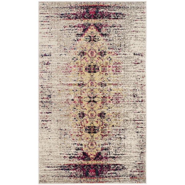 Monaco Small Rectangle Area Rug, Ivory and Pink - 3 x 5 ft.