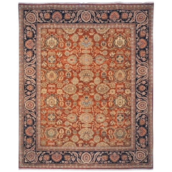 Old World 6 ft. x 9 ft. Hand Knotted Medium Rectangle Rug - Salmon-Navy