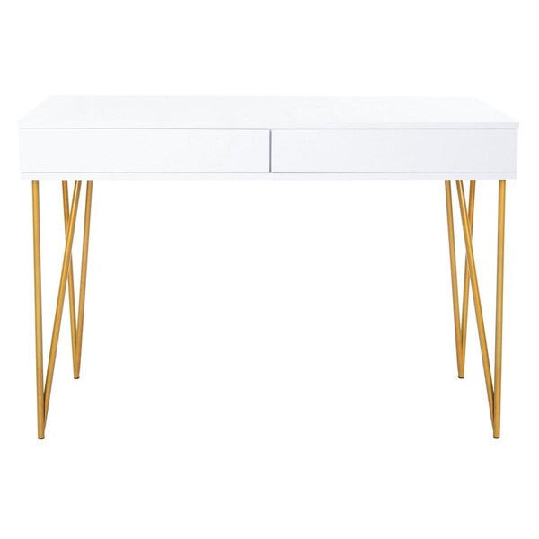 Pine Two Drawer Desk, White & Gold