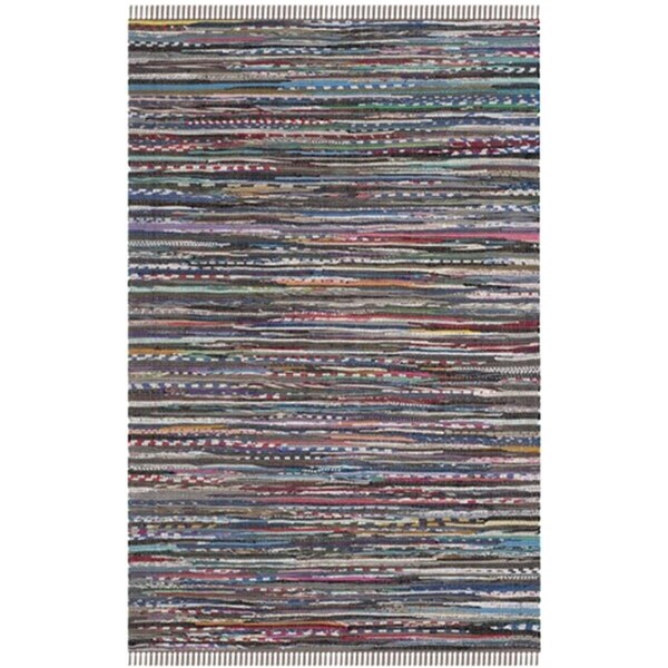 Rag Rug Hand Woven Medium Rectangle Rug- Rust - Multi- 5 x 8 ft.