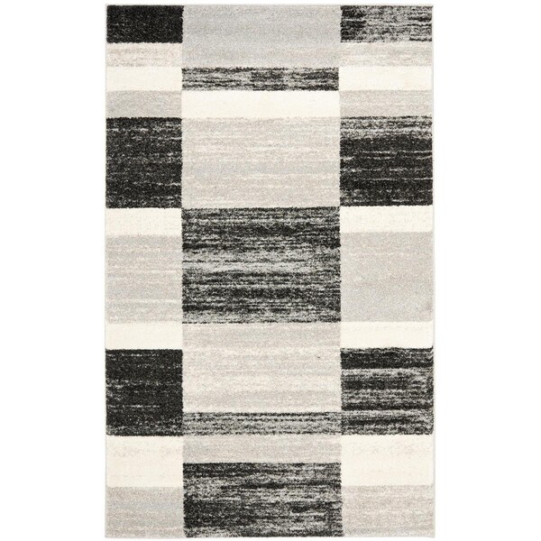 Retro Power Loomed Rectangle Area Rug, Black and Light Grey - 3 x 5 ft. (Discontinued)