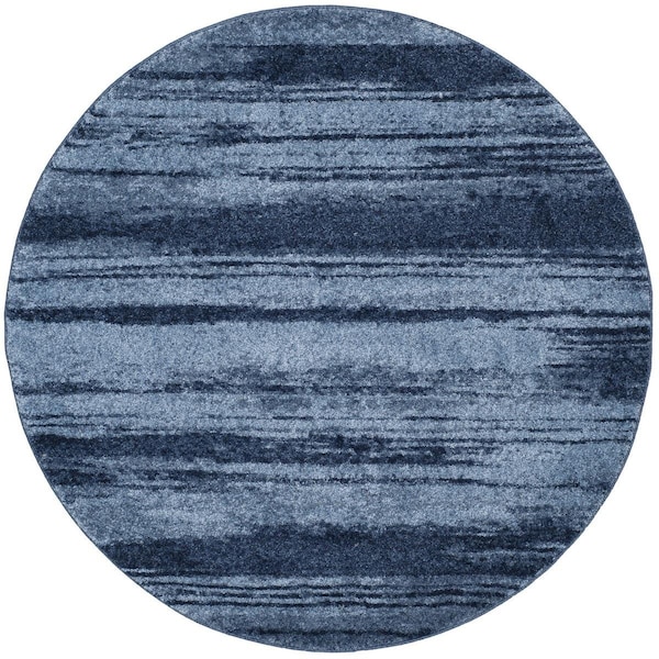 Retro Power Loomed Round Rugs; Light Blue & Blue - 6 x 6 ft. (Discontinued)