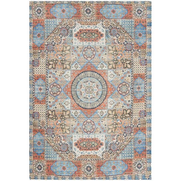 Saffron Hand Loomed Rectangle RugOrange & Blue 4 x 6 ft. (Discontinued)