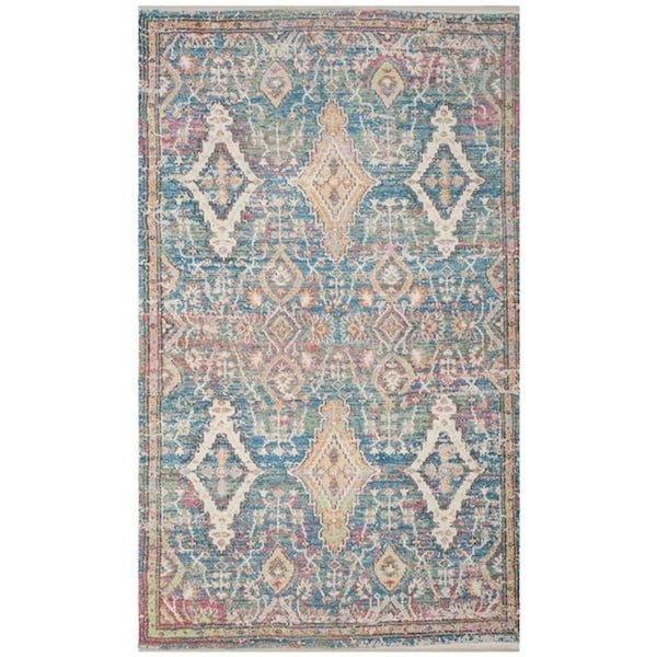 Saffron Small Rectangle Area Rug, Turquoise and Peach - 4 x 6 ft. (Discontinued)