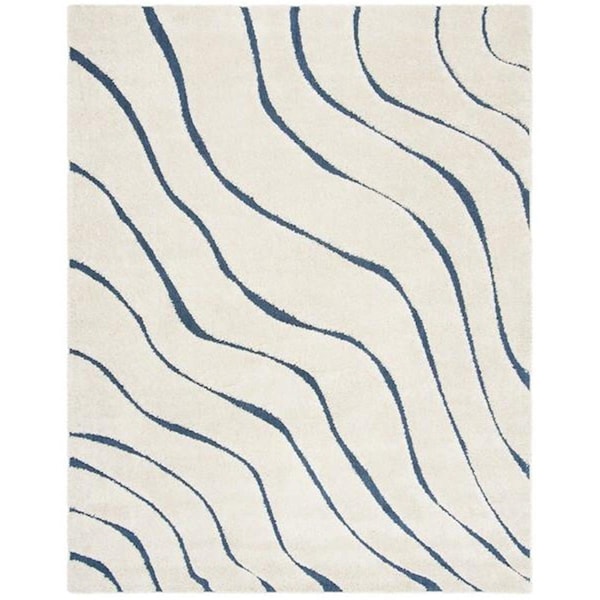 Shag Medium Rectangle Area Rug; Cream & Blue - 6 x 9 ft.