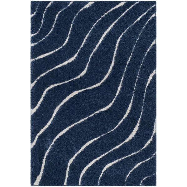 Shag Small Rectangle Area Rug; Dark Blue & Cream - 4 x 6 ft. (Discontinued)