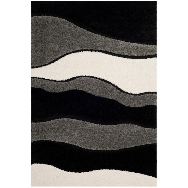 Shag Small Rectangle Area Rug; Grey & Black - 4 x 6 ft.