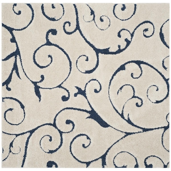 Shag Square RugsCream & Blue 5 x 5 ft. (Discontinued)