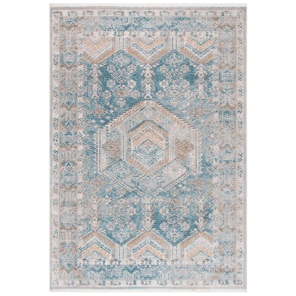 Shivan Power Loomed Rectangle Area Rug Blue & Gold - 8 x 10 ft. (Discontinued)