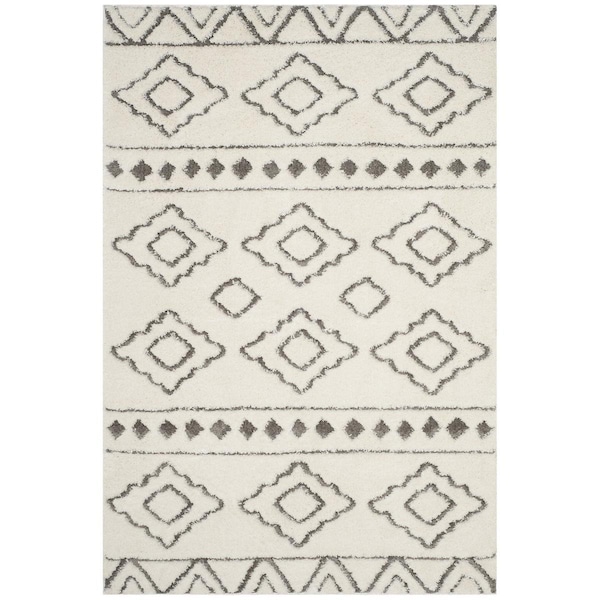 Sparta Shag Small Rectangle Area Rug; Ivory & Grey - 4 x 6 ft. (Discontinued)