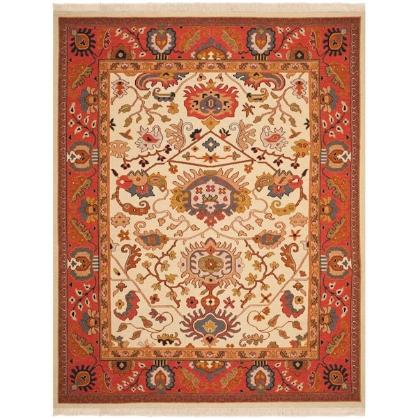 Sumak Hand Woven Rectangle Rug, Ivory and Rust - 6 x 9 ft.
