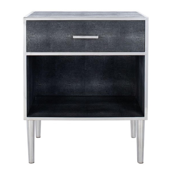 Tammy Faux Shagreen Nightstand, Black & Silver (Discontinued)