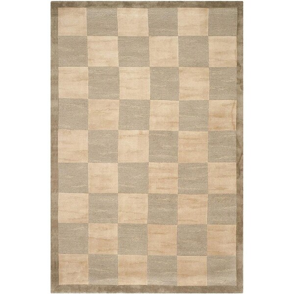 Tibetan Hand Knotted Large Rectangular Area RugGreen & Beige 9 x 12 ft.