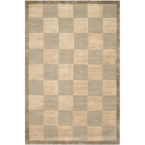 Tibetan Hand Knotted Medium Rectangular Area RugGreen & Beige 6 x 9 ft.