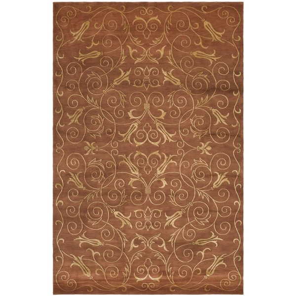 Tibetan Hand Knotted Medium Rectangular Area RugRust & Gold 6 x 9 ft.