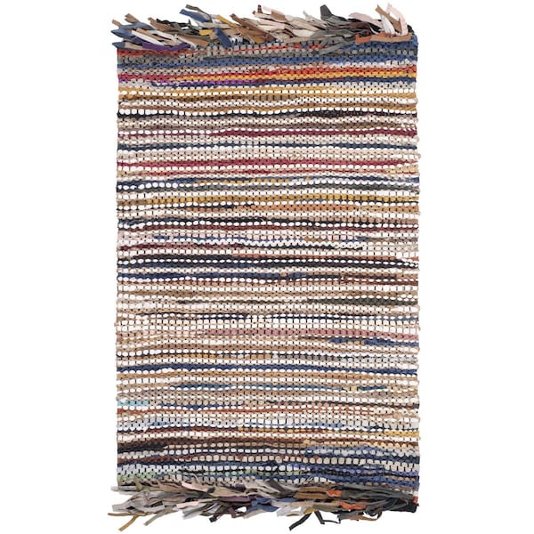 Vintage Leather Hand Woven Medium Rectangle Area Rug, Multicolor - 6 X 9 Ft.