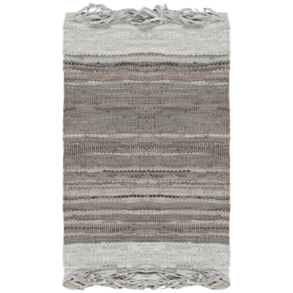 Vintage Leather Hand Woven Medium Rectangle Rug, Light Grey/ Taupe - 5 X 8 Ft. (Discontinued)