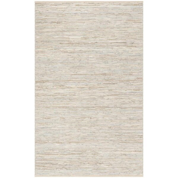 Vintage Leather Hand Woven Small Rectangular Area Rug, Beige - 3 x 5 ft.