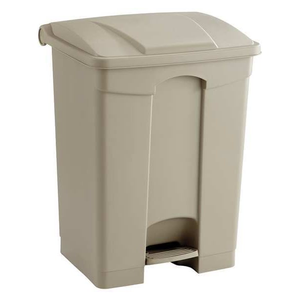 Rectangular, 17 gal, Tan, Height 26 1/4 in, Plastic, Smooth, Lid Included, Free-Standing