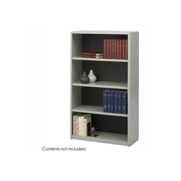 economical, sturdy, and strong with the valuemate bookcases you can't go wrong the shelf and exterior of the bookcase are constructed of steel and the back is made of solid fiberboard. Attractive, plastic snap-in radius corners make assembly easy and add to the overall strength of these units. Generous 12" deep shelves accommodate 3-ring binders and large publications. Includes four shelves. Gray finish.