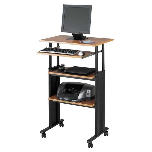 Stand-Up Adjustable Workstation, Material Steel/Compressed Wood, Color Medium Oak, Overall Height (In.) 49, Overall Width (In.) 29-1/2, Overall Depth (In.) 22, Shelf Depth (In.) 13-1/2, Load Capacity (Lb.) 100, Assembly Required