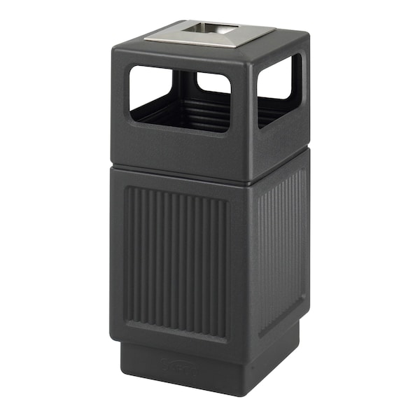 Square, 38 gal, Black, Height 39 1/4 in, Plastic, UV Protectant, Lid Included, Free-Standing