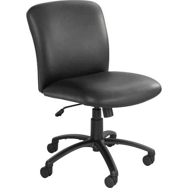 Mid-back chair is designed especially for multi-shift intensive-use environments, especially for the big and tall person. Chair offers a 500 lb. capacity and is rated for 24/7 use. Upholstered with 100 percent vinyl, chair features an extra-wide, deep seat with thick-cushioned foam for long-term comfort. Seat size is 22-1/4" wide x 20-3/4" deep. Back size is 23" wide x 19-3/4" high. Mid-back chair features a swivel seat with pneumatic seat-height adjustment from 18-1/2" to 22-1/2", tilt, tilt lock, tilt tension and an oversized five-star base with 2" hooded dual-wheel casters for stability. Meets or exceeds ANSI/BIFMA standards. Available in black frame only. Arms are sold separately.