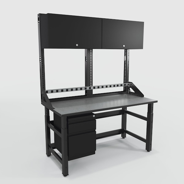 Computer Workstation, Product Type Computer Workstation, Overall Height 86 in, Overall Depth 30 in, Number of Trays 0, Overall Width 60 in, Number of Cabinets 2, Weight Capacity 1,000 lb, Number of Shelves 0, Color Black, Gray, Material Laminate, Steel, Number of Display Mounts 0, Standards ANSI/BIFMA