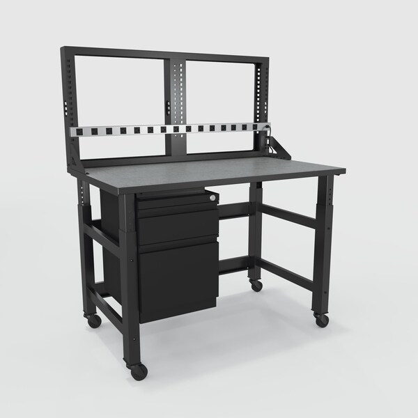 Computer Workstation, Product Type Computer Workstation, Overall Height 62 in, Overall Depth 30 in, Number of Trays 0, Overall Width 48 in, Number of Cabinets 0, Weight Capacity 1,000 lb, Number of Shelves 0, Color Black, Gray, Material Laminate, Steel, Number of Display Mounts 0, Standards ANSI/BIFMA
