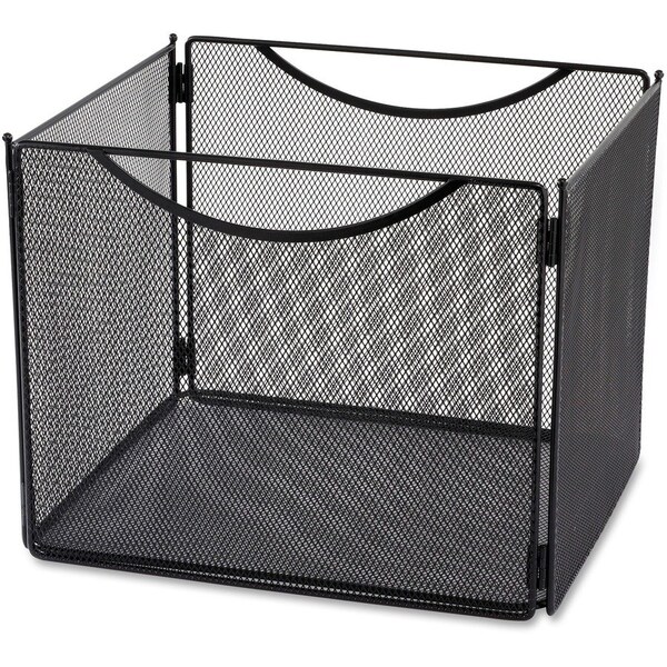 Versatile, portable, desktop file box adds style to your filing. Open top easily accommodates letter-size hanging files. Integrated handles allow easy carrying. 10" deep file box is collapsible for compact storage when not in use. Steel mesh features a powder-coat finish for durability.