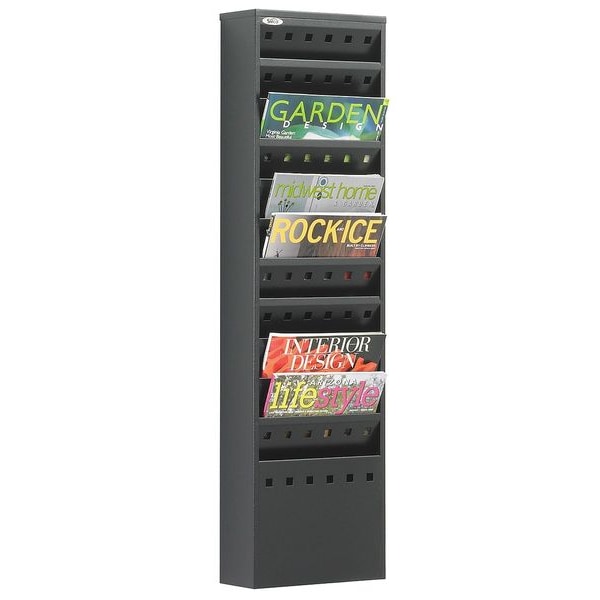 Literature Rack, Product Type Literature Rack, Number of Compartments 11, Includes Label Holders No, Overall Height 36 1/4 in, Overall Depth 4 in, Overall Width 10 in, Material Steel, Color Black, Literature Form Factor Letter, Swivel No, Assembly Assembled, Compartment Capacity 3 lb, Compatible Grainger Part Number Not Applicable, Compartment Depth 3/4 in, Compartment Height 7 1/4 in, Compartment Type Pocket, Compartment Width 9 in, Includes Mounting Hardware Yes, Mountable Yes