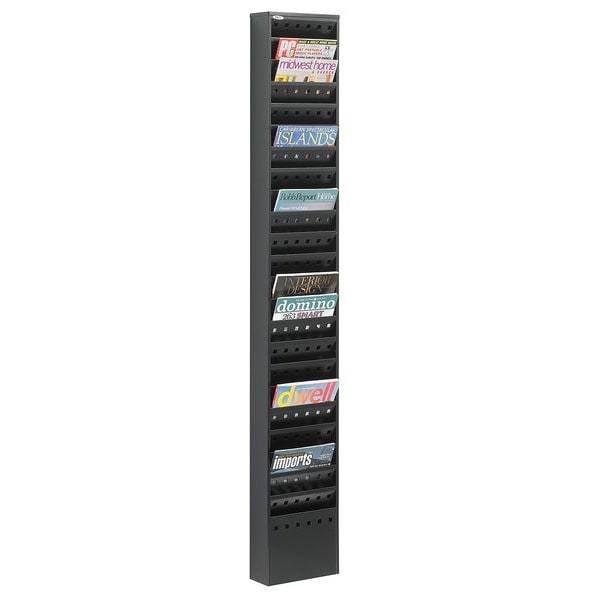 Literature Rack, Product Type Literature Rack, Number of Compartments 23, Includes Label Holders No, Overall Height 65 1/2 in, Overall Depth 4 in, Overall Width 10 in, Material Steel, Color Black, Literature Form Factor Letter, Swivel No, Assembly Assembled, Compartment Capacity 3 lb, Compatible Grainger Part Number Not Applicable, Compartment Depth 3/4 in, Compartment Height 7 1/4 in, Compartment Type Pocket, Compartment Width 9 in, Includes Mounting Hardware Yes, Mountable Yes