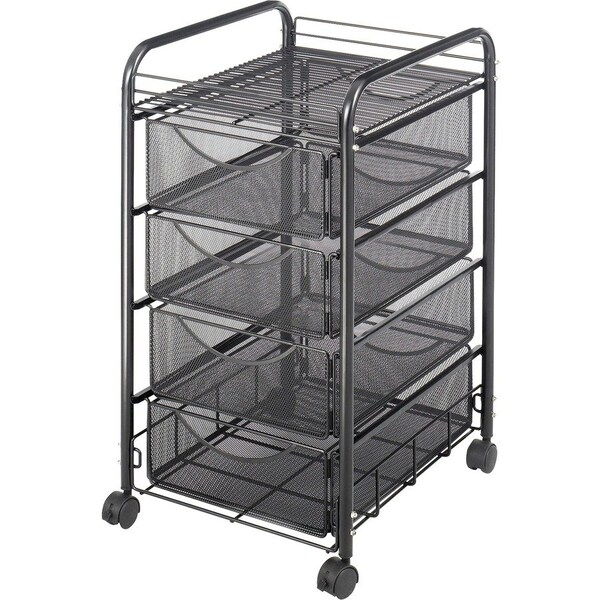 Get Onyx organized with this mesh file cart. Durable, contemporary mesh creates practical organization. Tubular steel frame includes four storage drawers to keep office essentials easily accessible. Drawers accommodate letter-size folders and more. Top shelf is perfect for additional filing supplies. For extra space in your work area, store cart under your desk or worksurface when not needed. Top shelf is perfect for additional filing supplies and more. Durable steel mesh offers a powder-coat finish. Mobile file cart rolls easily on four 1-1/2" swivel casters (two locking).