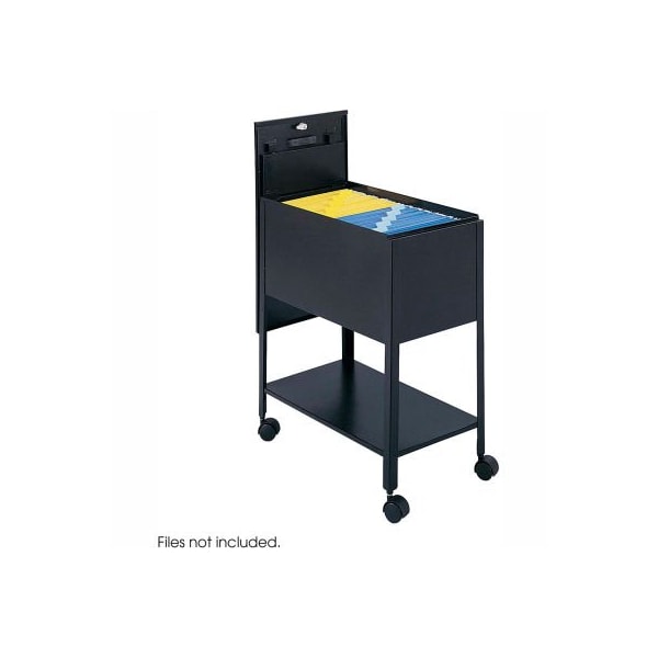 Safco extra deep letter sized mobile tub file with lock - black initiate filing innovation. Extra deep design helps those with extra work to store. Durable steel construction with locking lid (2 keys included) slides behind unit for access to files. Top viewing design allows easy filing and retrieval of stored documents. Holds letter size hanging file folders (not included). Economy tub file includes a convenient lower storage shelf and four swivel casters (two lock) that make it so files roll easily to point of use. For use with letter sized documents. Black finish.