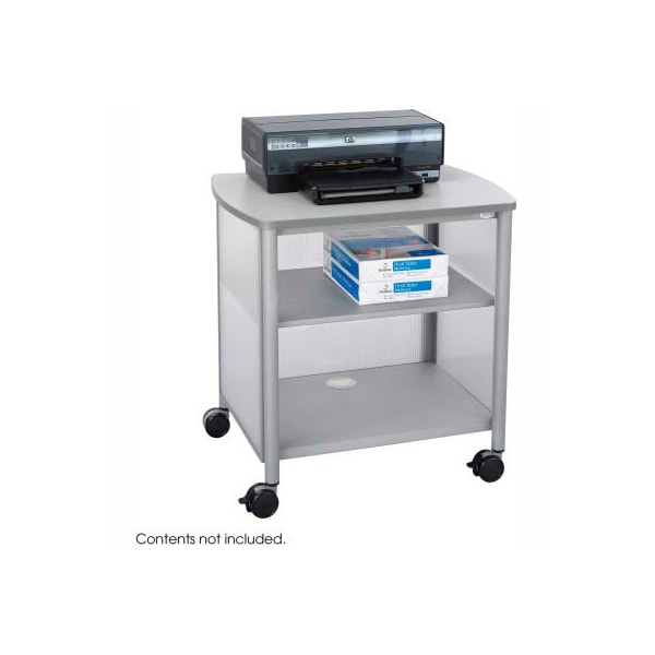Safco products 1857gr impromptu machine stand - gray this attractive machine stand is perfect for desk-side use. Steel frame with translucent polycarbonate panels adds a touch of class to your office area. Generously sized gray laminate top (26-1/4"w x 19-1/2"d) accommodates most office machines. Storage with one fixed interior shelf underneath for office supplies. Includes cord management. Silver powder coat finish. Four swivel casters (2 locking).