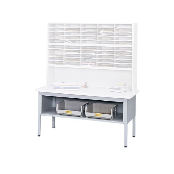 Sorting Table Base, Product Type Sorting Table Base, Overall Height 36 in, Overall Depth 30 in, Overall Width 60 in, Compatible Manufacturer Part Number E-Z Sort Mailroom Furniture, Tabletop Material Steel, Frame Color Gray, Load Capacity 500 lb, Assembly Unassembled, Number of Shelves 1, Frame Material Steel, Tabletop Color Not Applicable