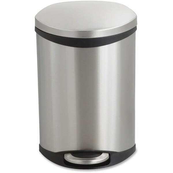 Make a smooth impression with the Step-On Receptacle. This hands-free receptacle offers a unique shape allowing it to fit into room corners to help save on valuable space. The surface is fingerprint-proof, ensuring it will always look its best. The receptacle also features a rigid plastic liner with built-in bag retainer. Capacity is 3 gallons. The lid closes slowly to prevent slamming of the lid for a quieter close.